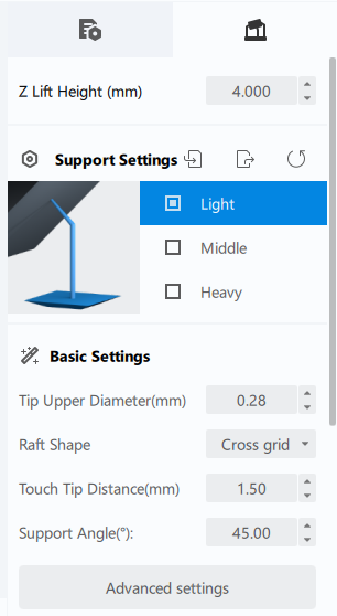 - Support Height: ارتفاع ساپورتها را تعیین میکند که بر اساس نیاز مدل باید تنظیم شود.