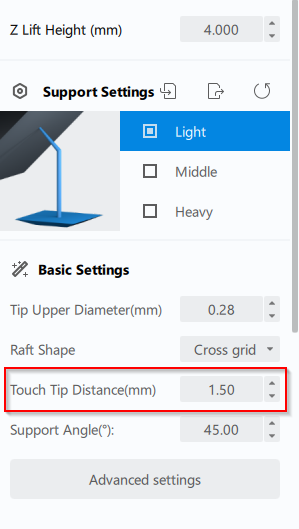 - تنظیم ارتفاع ساپورتها: ارتفاع ساپورتها باید به گونهای تنظیم شود که از مدل به خوبی پشتیبانی کند اما در عین حال در هنگام حذف دچار مشکل نشوید هنگام تمام شدن پرینت می توانید بعد از اینکه مدل را در الکل شستشو دادید با یک سشوار دور تا دور مدل را کمی حرارت دهید . اینکار باعث نرم شدن ساپورت ها و در نتیجه راحت تر جدا شدن آن ها می شود .